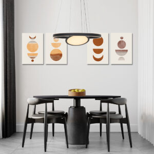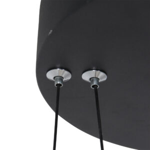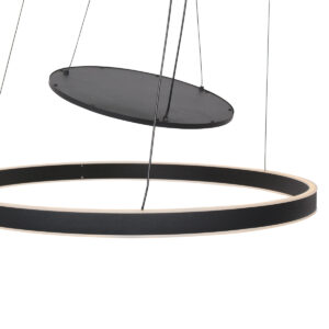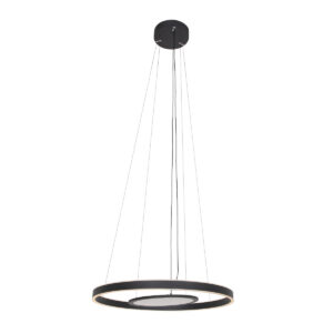 La bague métallique noire d’un diamètre de 60 cm diffuse la lumière vers le haut et vers le bas, créant un effet équilibré et doux. Avec une intensité lumineuse de 6600 lumens et une température de couleur chaude de 2700 Kelvin, cette lampe est parfaite au-dessus de la table à manger ou comme pièce maîtresse d’éclairage dans le salon. La fonction dimmable permet un ajustement facile de l’intensité lumineuse.