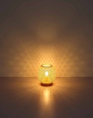 Lampe de table ronde bohème en bambou naturel Globo Mirena
