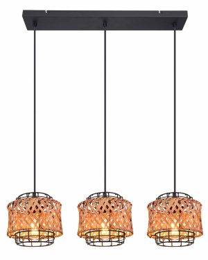 Cette suspension de 65 cm de la série Gina est un ajout élégant à votre intérieur. Grâce à sa forme allongée, la suspension peut être magnifiquement installée au-dessus d’une table à manger, offrant ainsi un éclairage uniforme. Elle se compose d’une plaque métallique noire à laquelle sont suspendus trois câbles noirs avec des écrans en métal. Chacun est équipé d’un anneau en bambou tressé et peut être équipé d’ampoules E27 au choix, vous permettant ainsi de déterminer individuellement la couleur et la luminosité de la lumière. De plus, la hauteur de la suspension peut être ajustée jusqu’à 120 cm lors de l’installation. Avec d’autres modèles de la même série, vous pouvez créer une atmosphère chaleureuse dans vos quatre murs et compléter l’ensemble.