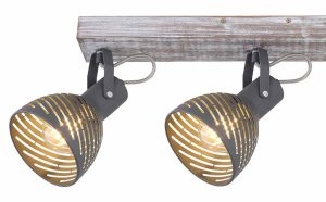 Spot 3 lumières gris bois/métal Globo Mori