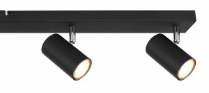 La série de plafonniers Robby se distingue par son design métallique noir épuré. Avec sa longueur généreuse de près de 1,2 mètre, ce plafonnier dispose de six douilles GU10 réglables. Ce qui caractérise ce plafonnier est la liberté de choix de la source lumineuse, vous permettant de déterminer vous-même l’intensité et la couleur de la lumière jusqu’à un maximum de 35 watts. Pour une durabilité et une efficacité énergétique, nous recommandons d’utiliser des ampoules LED.