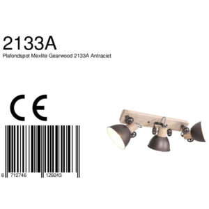 Le spot plafonnier ou mural 3 lumières couleur anthracite de la série Gearwood Spot de Mexlite est fabriqué en métal avec des accents en bois et un réflecteur anthracite mat. La lampe dispose d’un culot E27, compatible avec des sources lumineuses jusqu’à 40 watts. Les spots sont inclinables et rotatifs individuellement pour une flexibilité maximale. La lampe est dimmable avec un variateur externe (non inclus) et une source lumineuse appropriée. Le diamètre de l’abat-jour est de 15 cm et la hauteur totale du luminaire est de 19 cm.