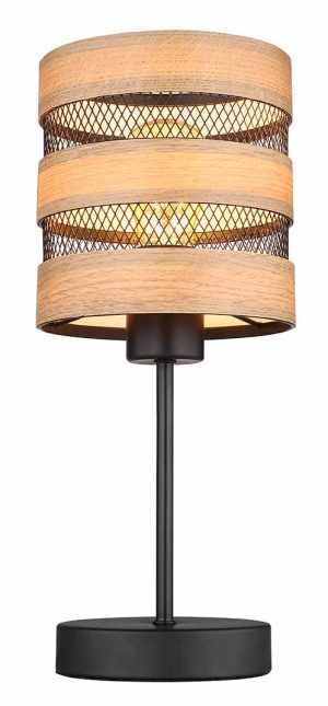 Cette superbe lampe de table s’inspire de son design simple. Une tige métallique ronde noire émerge d’une base ronde et atteint une hauteur de 33,5 cm avec une connexion E27. La connexion E27 est équipée d’un magnifique abat-jour en grilles métalliques et décorations en bois. Cela vous permet de déterminer la couleur et la luminosité de la lumière jusqu’à une puissance maximale de 40 watts.