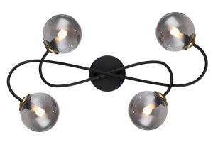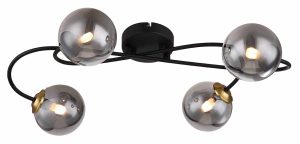 Plafonnier noir/messing tourné 4 boules en verre fumé Globo Jorge