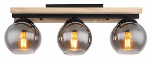 Ce plafonnier dispose de trois douilles E27, chacune avec un bel abat-jour en verre fumé (Ø 18cm), à partir d’un support de plafond rectangulaire noir (60 x 15cm) avec des décorations en bois. Idéal pour ajuster la couleur et la luminosité de la lumière, et recommandé avec des ampoules LED pour des économies d’énergie et une longue durée de vie.