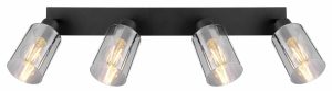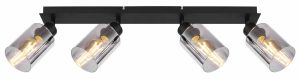 Ce projecteur élégant de la série Hadera offre un design épuré avec son boîtier en métal noir mat étroit (67x9cm). Avec quatre douilles E27, dotées de capuchons cylindriques en verre fumé (Ø9cm), cette lampe vous permet de régler vous-même la couleur et la luminosité de la lumière jusqu’à 40 watts, parfaite pour créer l’ambiance souhaitée dans n’importe quelle pièce.