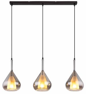 La suspension est fabriquée en métal noir mat et en verre fumé. Elle a un câble noir et les dimensions sont LxBxH : 900x200x1400 mm. Le luminaire nécessite 3 ampoules E27 d’une puissance maximale de 60 W et d’une tension de 230 V, qui ne sont pas incluses. Nous espérons que vous serez satisfait de cette suspension.