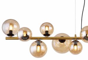 Suspension noir/messing horizontale 13 boules en verre d’ambre Globo Riha