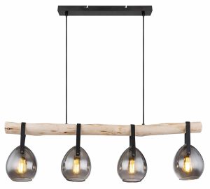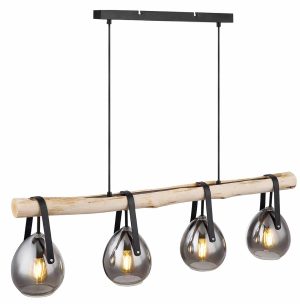 Cette suspension de la série Diethild est un véritable point focal dans tout intérieur. Elle dispose d’une barre en bois de 100 cm de long avec quatre verres fumés en forme de goutte, suspendus à deux câbles. Vous pouvez utiliser des ampoules E27 de votre choix pour déterminer la couleur de la lumière et la luminosité. Embellissez davantage votre intérieur avec d’autres modèles de cette série.