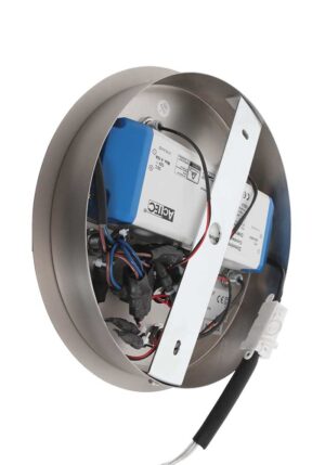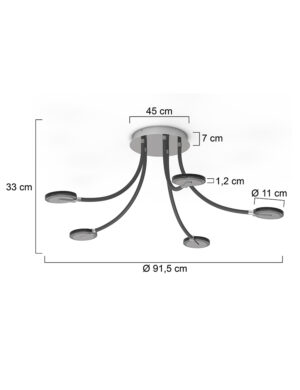 Le plafonnier est équipé d’un module LED remplaçable de 10 Watts et offre une lumière blanc chaud de 2700 Kelvin avec une haute luminosité de 5000 Lumens. En combinaison avec un variateur externe, la lampe est dimmable, vous permettant de créer facilement l’ambiance souhaitée. Avec un diamètre généreux de 91,5 centimètres, cette lampe attire vraiment le regard et doit être connectée au réseau électrique.