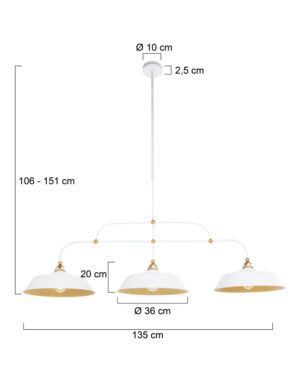 Suspension chic 3 lampes blanc et or en métal Mexlite Nové or et opaque