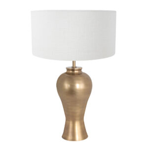La lampe de table en forme de vase en bronze Brass est un magnifique mélange de design classique et de modernité raffinée. Le cadre en bronze chaud dégage du luxe et est accentué par un abat-jour en lin blanc, qui permet une diffusion douce et diffuse de la lumière. Grâce à la douille E27, la lampe est compatible avec diverses sources lumineuses jusqu’à 40 watts.