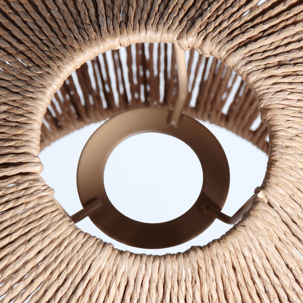 Le abat-jour est compatible avec une douille E27 et peut être utilisé comme lampe suspendue dans la cuisine, la chambre ou le hall. Grâce à sa hauteur plus basse, l’abat-jour a un aspect aérien, tandis que les matériaux naturels apportent une atmosphère conviviale et chaleureuse.