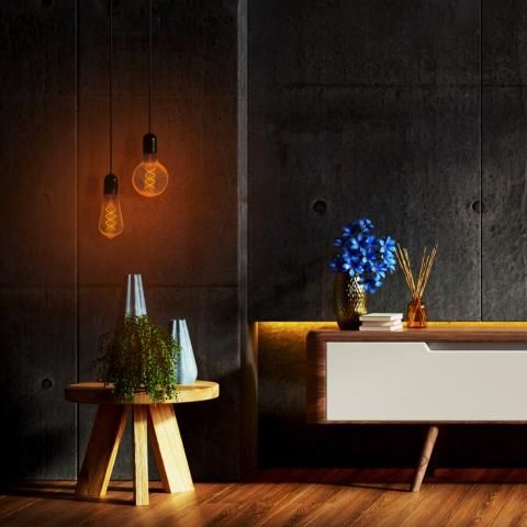 Les LED sont la tendance actuelle. Elles permettent d’économiser de l’argent et de l’énergie. C’est pourquoi cette source de lumière a une étiquette énergétique A. Elle ressemble à une ampoule à incandescence et diffuse également cette lumière chaude et agréable, mais comme il s’agit d’une source de lumière LED, elle offre de nombreux avantages. Bonne nouvelle : la source de lumière est dimmable.
