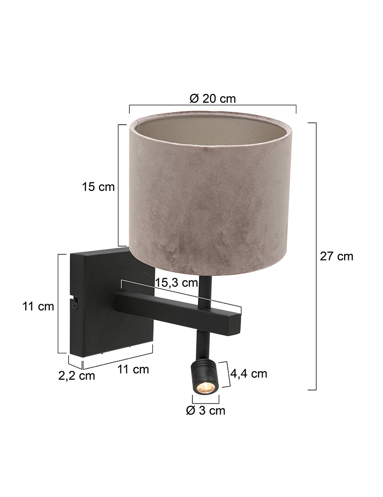 La lampe murale avec un abat-jour gris de la série Stang de Steinhauer allie design contemporain et commodité fonctionnelle. La robuste structure en métal noir est équipée d’un support E27 pour des sources lumineuses jusqu’à 40W et d’une lampe de lecture intégrée de 1W, 2900 Kelvin et 100 lumens. Les deux sources lumineuses peuvent être contrôlées séparément via les deux interrupteurs sur la plaque murale.