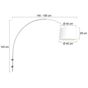 La lampe murale en arc en acier de la série Sparkled Light de Steinhauer est un ajout moderne et fonctionnel à tout intérieur. L’abat-jour en métal brossé dispose d’un arc réglable avec une profondeur de 130 à 175 cm et une hauteur de 145 cm, ce qui rend cette lampe flexible à utiliser. La douille inclinable E27 rend la lampe compatible avec des sources lumineuses jusqu’à 40W.