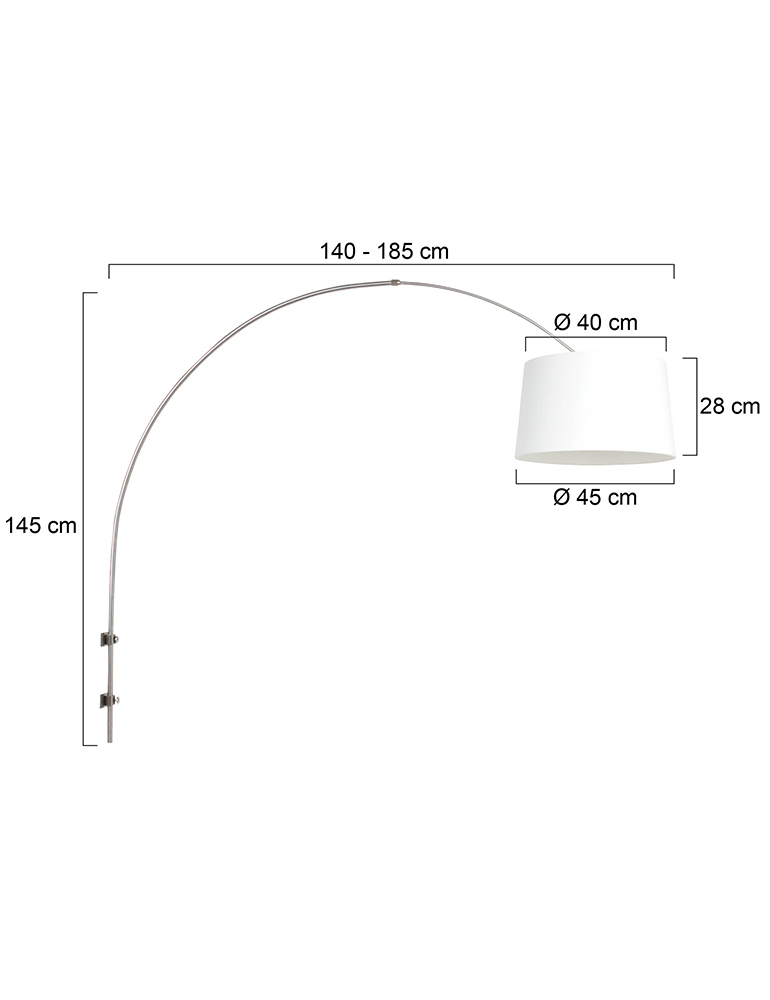 La lampe murale en acier en arc de la série Sparkled Light de Steinhauer allie un design robuste à une apparence raffinée. Le support en métal brossé est réglable en profondeur de 130 à 175 cm et a une hauteur de 145 cm, permettant ainsi un positionnement optimal de l’éclairage. Équipée d’un douille E27 inclinable, adaptée aux sources de lumière jusqu’à 40W.