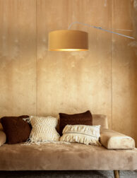 Un véritable point focal ! L’abat-jour en velours jaune ocre ajoute une touche de glamour à ton intérieur, tandis que le cadre métallique robuste crée un contraste ludique. Cette lampe murale apporte non seulement de la lumière, mais aussi du caractère et de l’ambiance dans chaque espace.