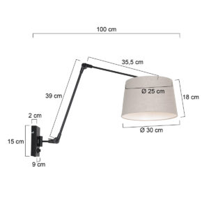 La lampe murale avec abat-jour conique Steinhauer Prestige Chic noir et gris est une magnifique combinaison de métal et de lin. L’abat-jour en lin gris adoucit l’apparence dure du cadre en métal noir. Un cadre angulaire associé à un abat-jour rond. C’est un ensemble qui se renforce mutuellement. De plus, cette lampe offre également une lumière agréable. Tu peux faire pivoter le bras du cadre afin d’orienter la lumière exactement là où tu le souhaites !