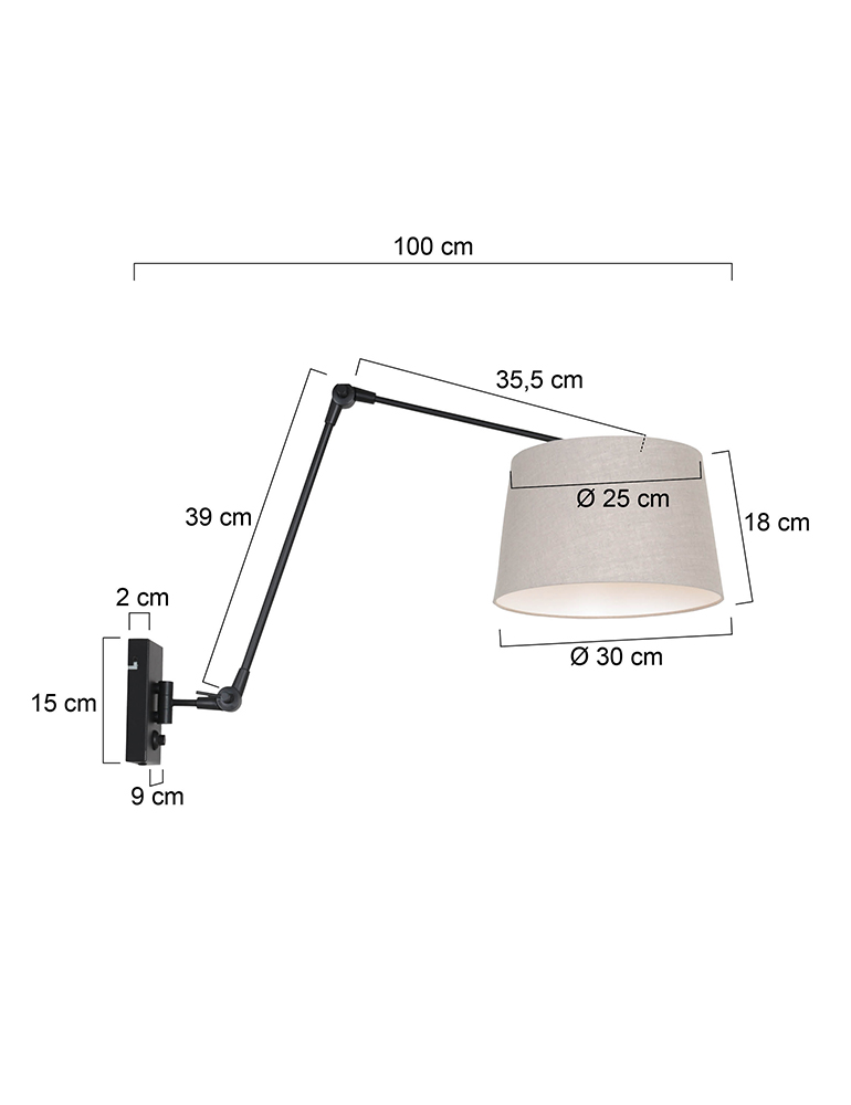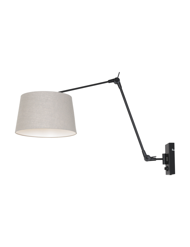 La lampe murale avec abat-jour conique Steinhauer Prestige Chic noir et gris est une magnifique combinaison de métal et de lin. L’abat-jour en lin gris adoucit l’apparence dure du cadre en métal noir. Un cadre angulaire associé à un abat-jour rond. C’est un ensemble qui se renforce mutuellement. De plus, cette lampe offre également une lumière agréable. Tu peux faire pivoter le bras du cadre afin d’orienter la lumière exactement là où tu le souhaites !