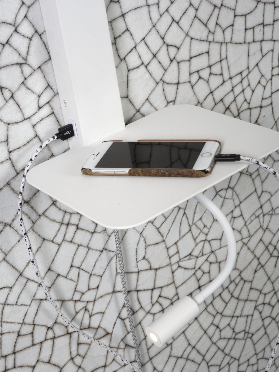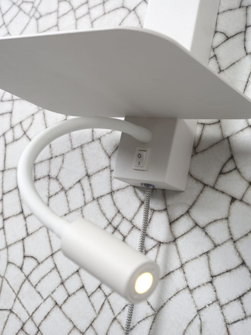 Applique murale blanche avec lampe de lecture, une touche moderne pour votre intérieur. Convient pour la salle à manger, la chambre ou le salon. Équipée d’un culot E27 et résistante à la poussière (IP20). Alliez fonctionnalité et élégance.