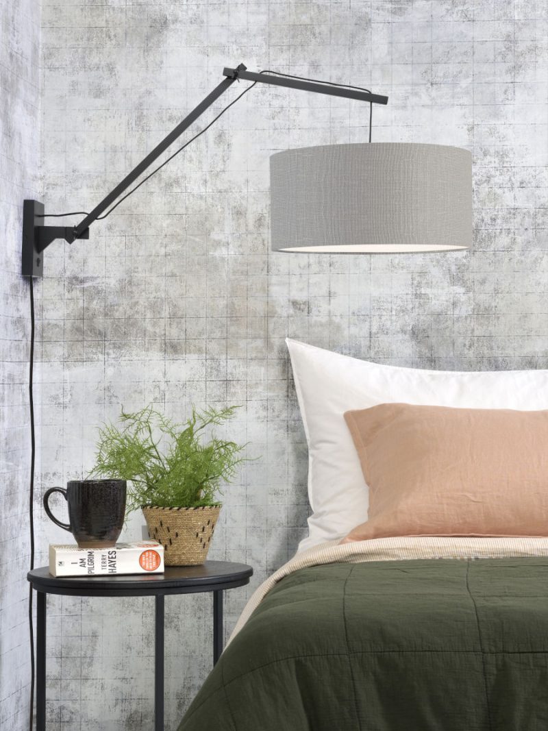 La lampe murale à double articulation Andes en gris clair apporte une ambiance sereine dans votre salle à manger ou votre chambre. Fabriquée en bambou et en lin, cette lampe offre une texture et un aspect subtils. Équipée d’un socket E27 et d’une protection contre la poussière IP20, c’est une solution d’éclairage fiable et élégante.