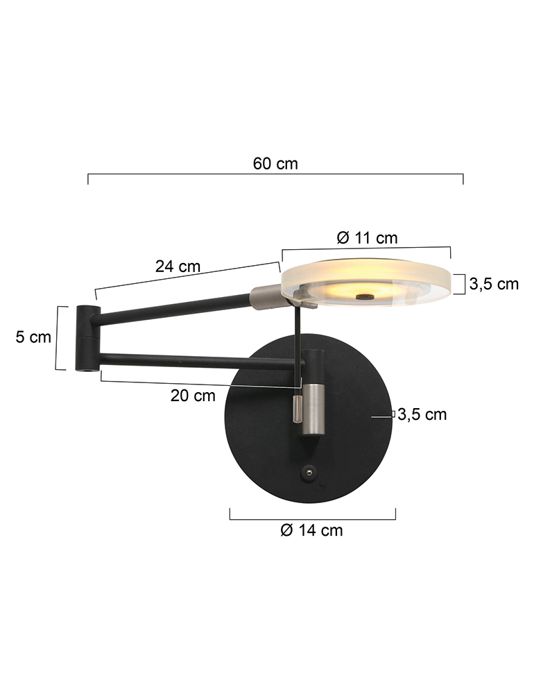 Si seulement vous aviez regardé chez nous tout de suite, vous n’auriez pas eu à chercher si longtemps une lampe de lecture agréable. “Turound”, conçu par Steinhauer, est une lampe murale LED réglable. La lampe est un beau jeu de métal argenté et noir. Le bras est composé de deux longueurs presque égales et l’abat-jour est une lampe LED en forme de disque. Votre expérience de lecture n’a jamais été aussi agréable.