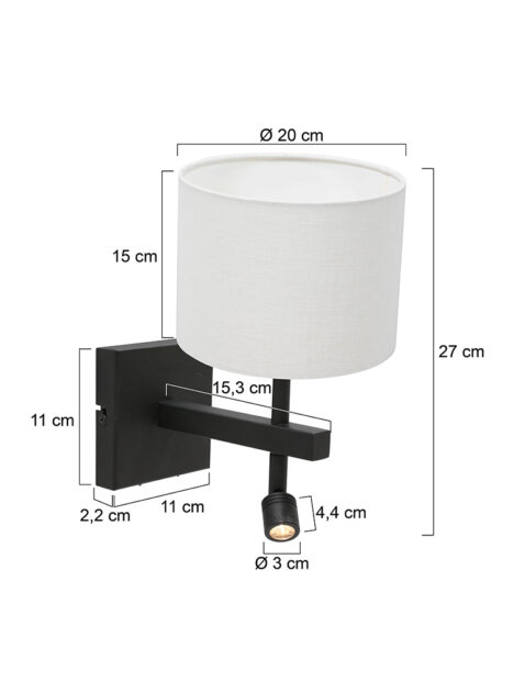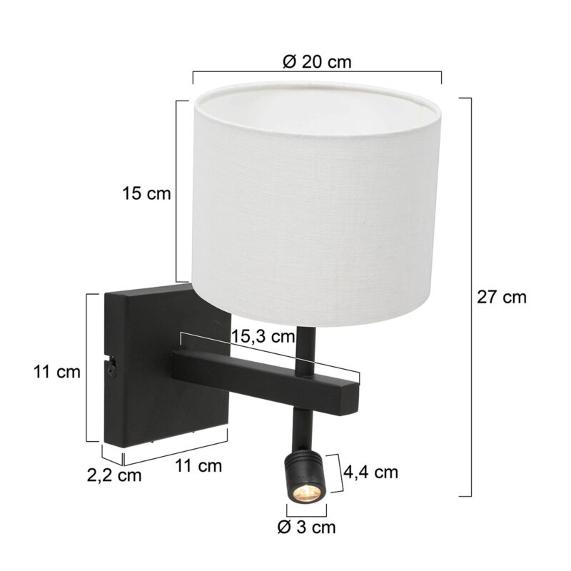 La lampe murale moderne avec abat-jour blanc de la série Stang de Steinhauer est une solution d’éclairage élégante et polyvalente. Le cadre métallique noir est doté d’un support E27, adapté aux sources lumineuses jusqu’à 40W, et d’une lampe de lecture intégrée de 1W, 2900 Kelvin et 100 lumens, permettant à la fois un éclairage d’ambiance et une lumière ciblée.