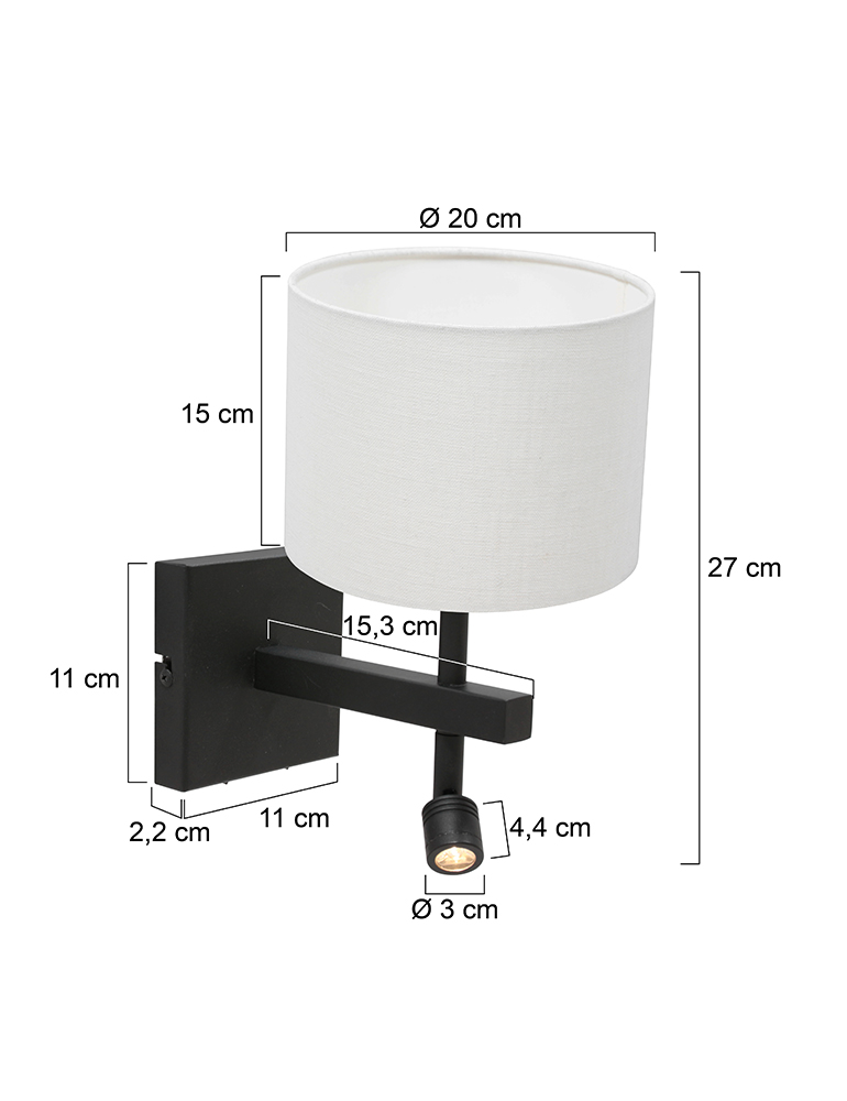Les deux sources lumineuses peuvent être contrôlées séparément grâce aux deux interrupteurs sur la plaque murale. La lampe est fournie avec un abat-jour en lin blanc grossier qui assure une diffusion de lumière subtile et douce. Idéal pour le salon, la chambre à coucher, la salle à manger ou l’espace de travail. Inclus 2 ans de garantie fabricant.