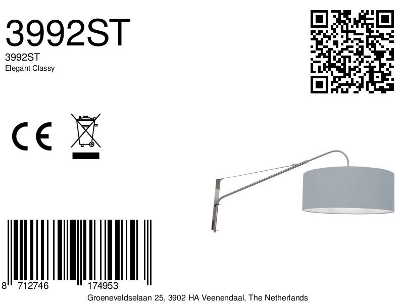 La lampe murale à arc court de la série Elegant Classy de Steinhauer offre un éclairage moderne et élégant pour les salles à manger et les salons. Cette lampe en métal et en tissu possède un douille E27 et est IP20 résistant à la poussière. La finition en acier lui confère une allure épurée et moderne. Parfaite pour un aménagement contemporain et stylé.