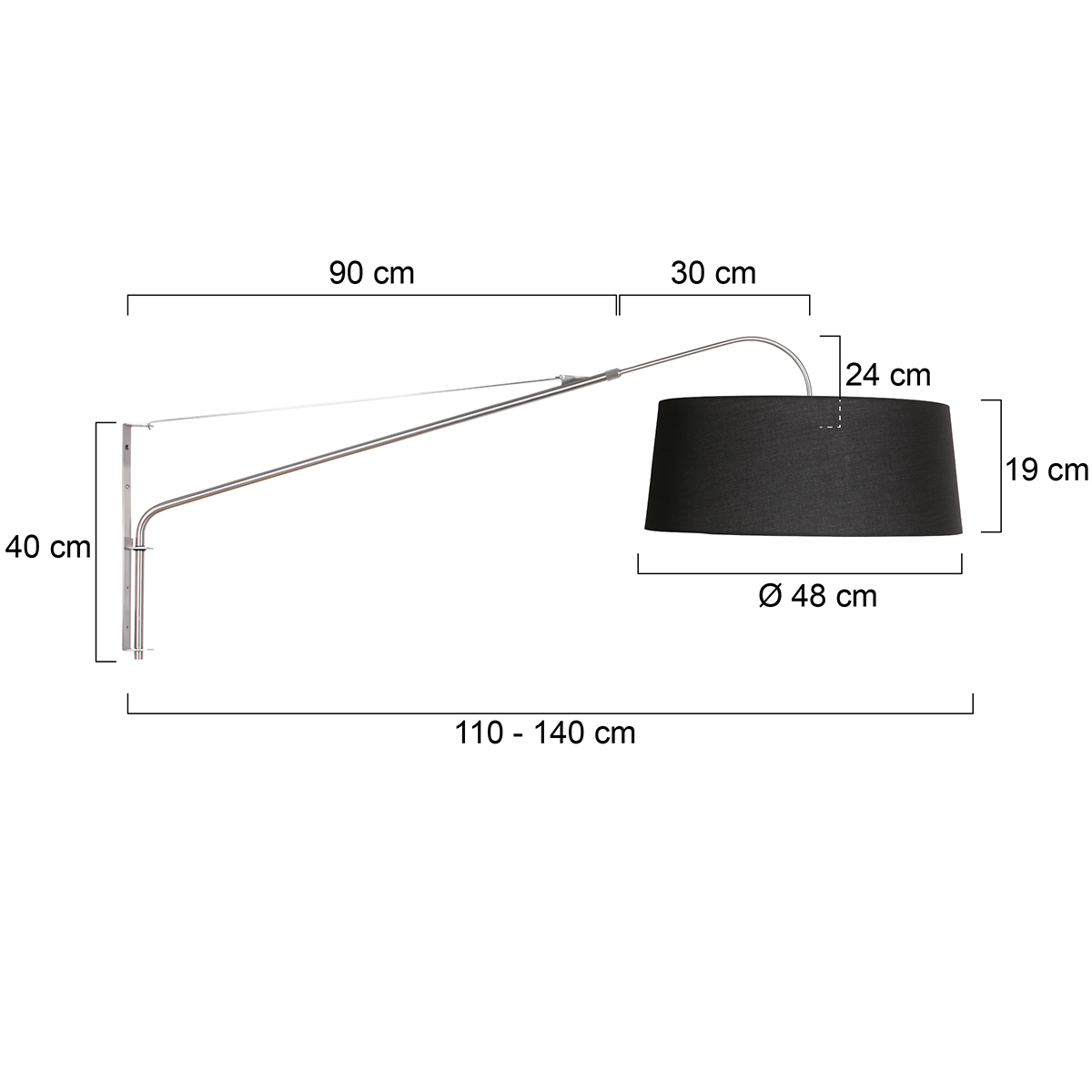Cette lampe murale de couleur acier avec un bras long et réglable est un véritable incontournable dans la maison. Le bras peut pivoter et s’étendre d’environ 90 à 120 centimètres, ce qui vous permet de déplacer facilement la source de lumière vers votre coin salon ou votre espace de travail préféré. Le luminaire est en acier brossé, équipé d’une douille E27 inclinable et est livré avec un cordon noir et blanc de 180 centimètres avec interrupteur.