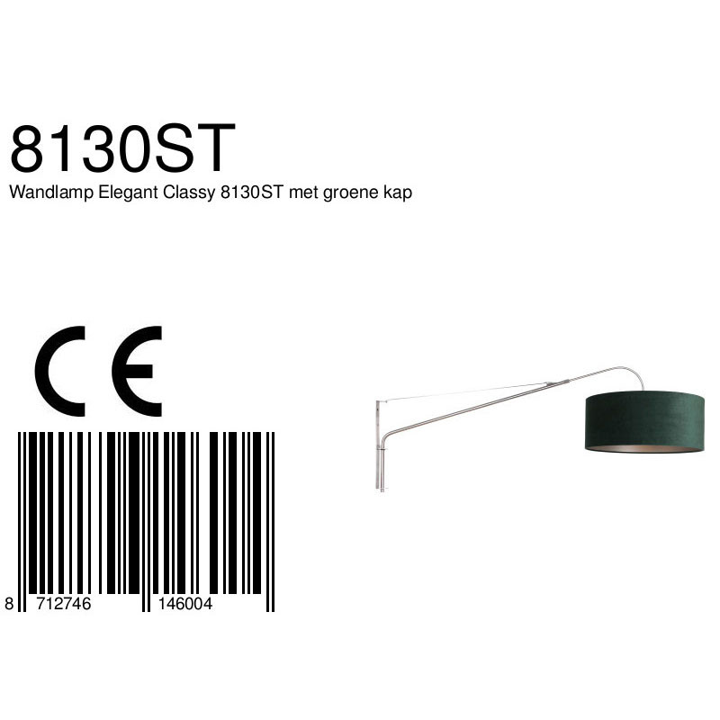 Si le raffinement est ce que vous cherchez… alors jetez un œil à cette applique “Classy” de Steinhauer. Une élégante tige courbée, comme une canne, maintient l’abat-jour à distance du mur. Entre le mur et cette tige de couleur métallique, un câble en acier est tendu. L’abat-jour est en velours vert classique. “Classy” peut couvrir presque un mètre et demi et vous offrira une lumière de lecture comme jamais auparavant.