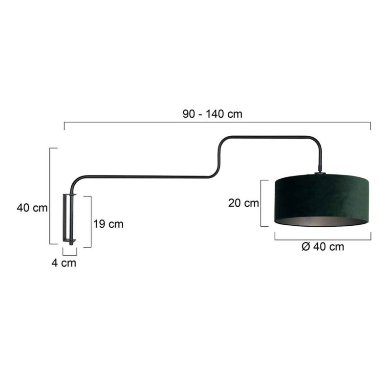 La lampe murale noire Bloeba ajoute une touche de luxe et de raffinement à votre intérieur. L’abat-jour en velours vert saisissant donne à la lampe une allure chic, tandis que le bras pivotant en métal flexible offre une liberté de mouvement maximale avec une longueur extensible allant jusqu’à 150 cm. Grâce à la douille E27 inclinable, l’abat-jour reste toujours bien droit, ce qui garantit un effet lumineux parfait.