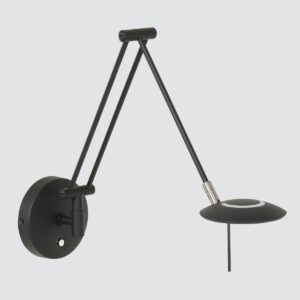 L’applique murale noire de la série Zodiac est équipée d’un module LED remplaçable de 6 watts (2700 Kelvin, 600 lumens). Le variateur à impulsion sur la plaque murale permet d’ajuster facilement l’intensité lumineuse selon vos envies. La lampe est dotée d’un bras articulé et pivotant, vous permettant de diriger la lumière exactement là où vous en avez besoin. La portée est réglable jusqu’à un maximum de 53 cm et la plaque murale a un diamètre de 12 cm. Le cordon mesure 200 cm de long, ce qui permet une installation facile.