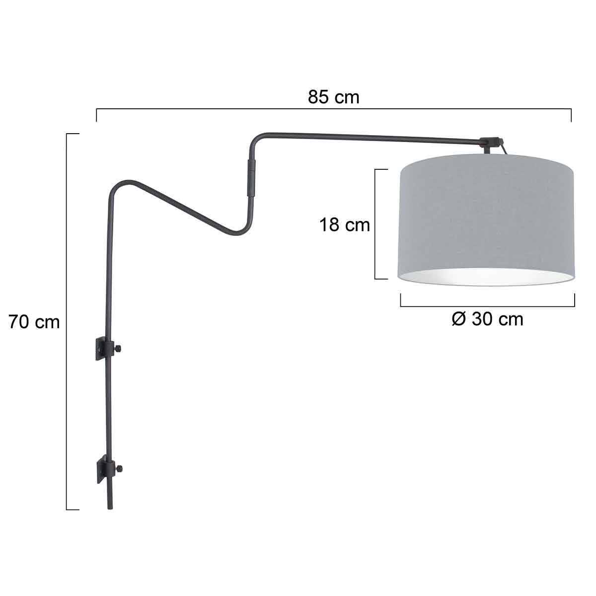 La lampe murale pivotante de la série Linstrom d’Anne Lighting combine un design moderne avec une utilisation optimale. Le cadre en métal avec un revêtement en poudre noire est équipé d’un abat-jour inclinable et pivotant. Dotée d’un culot E27 et adaptée aux sources lumineuses allant jusqu’à 40 watts. Avec une hauteur de 70 cm et un rayon d’action de 90 cm, cette lampe murale offre un éclairage polyvalent. Complète avec un abat-jour en lin bleu et un cordon de 180 cm avec interrupteur. Une solution gain de place qui peut remplacer un lampadaire. Livrée avec une garantie de fabricant de 2 ans.