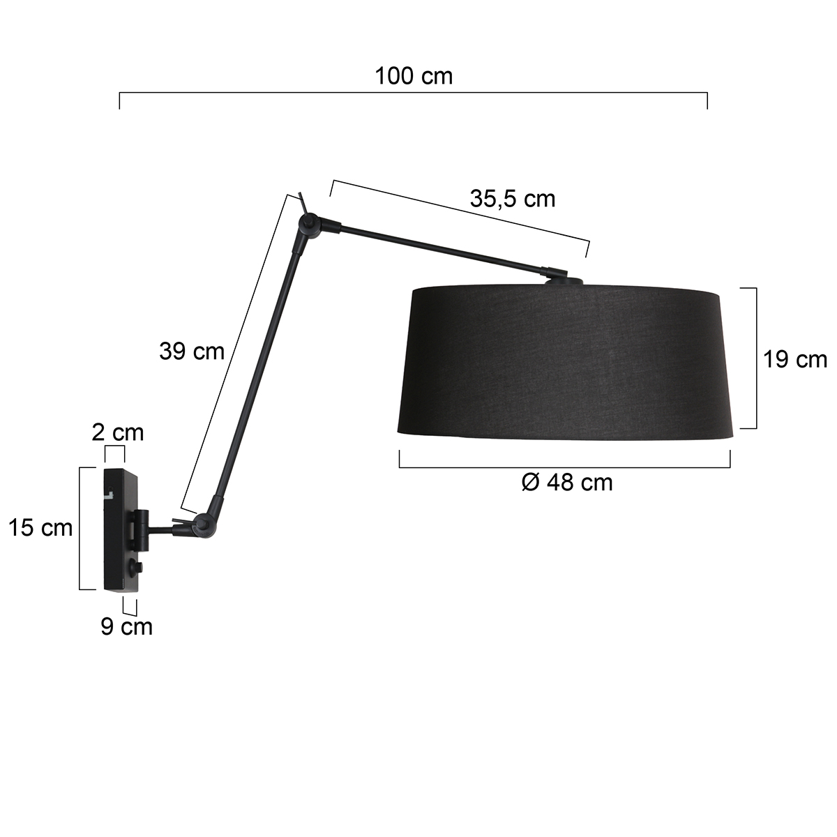 L’abat-jour en lin noir a un diamètre de 48 centimètres et une hauteur de 19 centimètres. L’intérieur blanc permet une réflexion lumineuse claire, tandis que le textile noir ajoute une touche moderne et puissante. Ensemble, la lampe murale et l’abat-jour forment une combinaison élégante et intemporelle, idéale pour le salon, la chambre à coucher ou l’espace de travail.