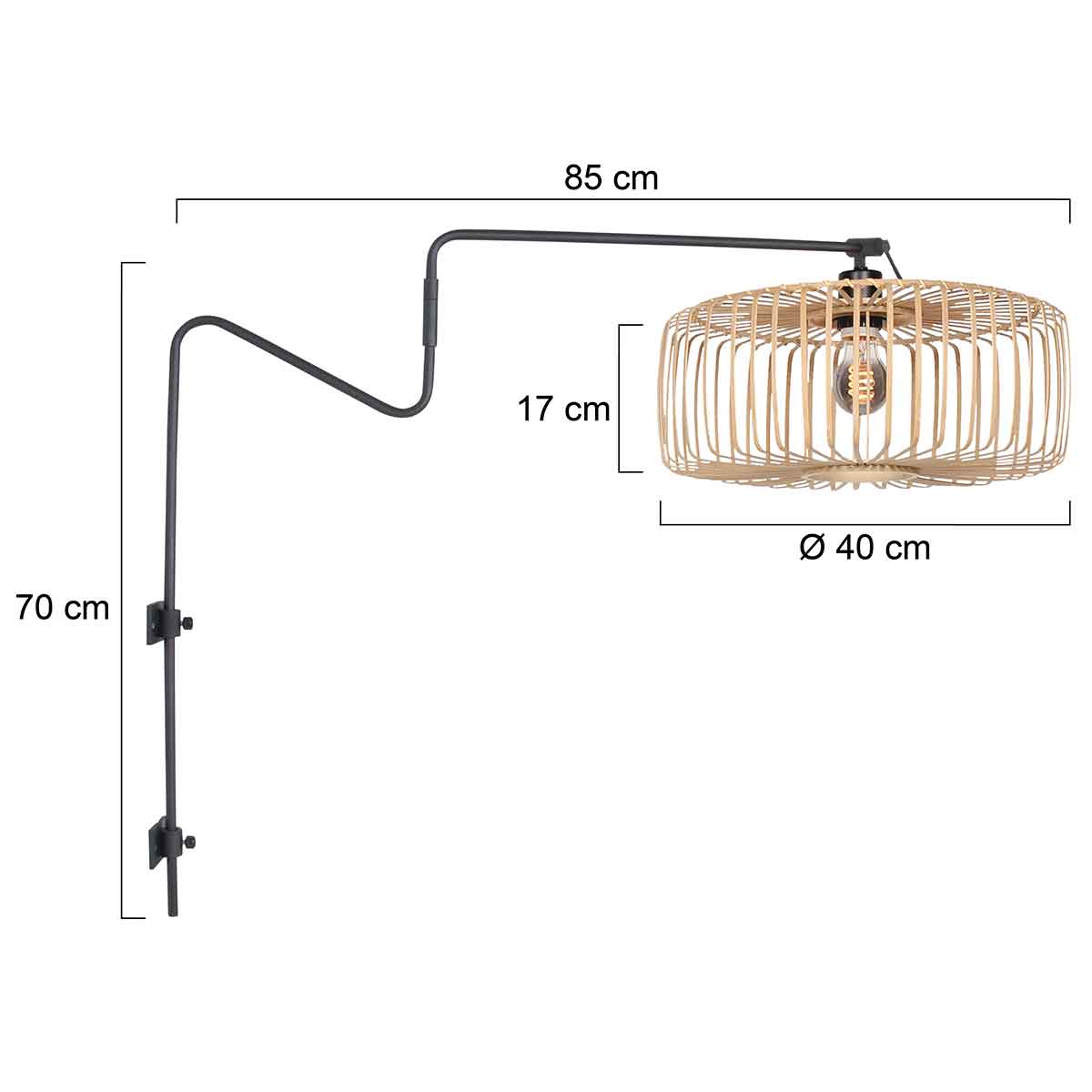 La lampe murale Linstrom d’Anne Lighting est une solution d’éclairage tendance et pratique. Ce luminaire en métal noir avec finition en poudre a une hauteur de 70 cm et un reach de 90 cm, offrant un éclairage ciblé dans la salle à manger, la chambre à coucher ou le salon. L’abat-jour en bambou naturel de 40 cm est inclinable et la lampe elle-même est rotative pour une flexibilité supplémentaire. Avec un câble de 180 cm et un interrupteur, la lampe est facile à utiliser. Une lampe murale élégante qui fait gagner de l’espace au sol. Comprend une garantie fabricant de 2 ans.