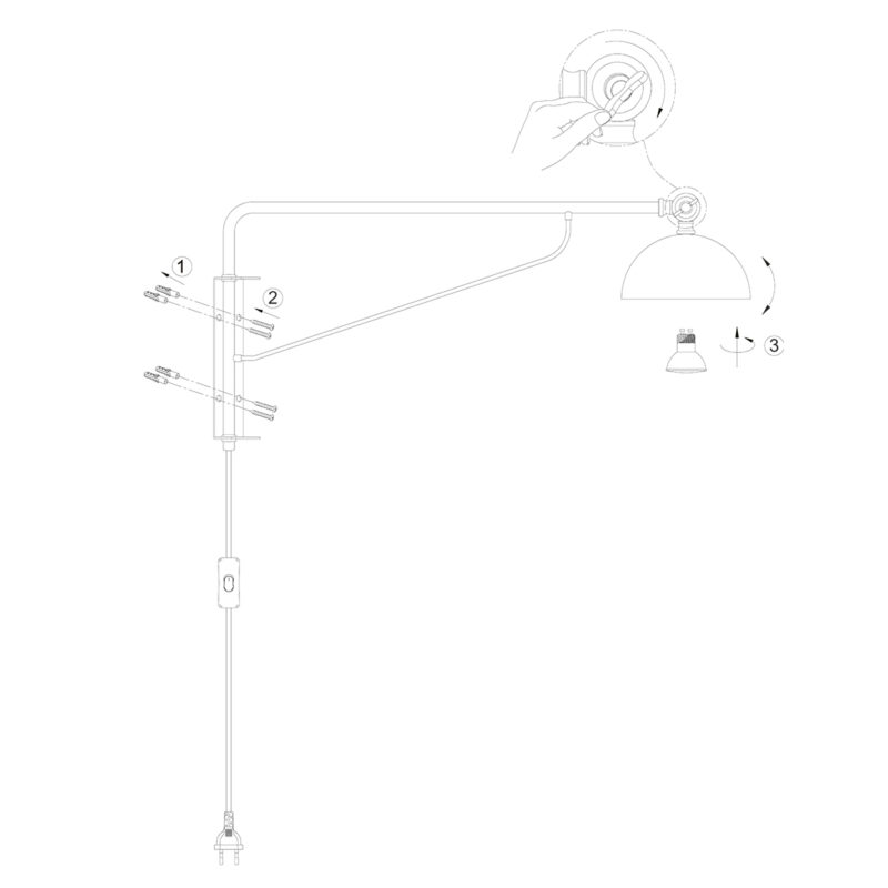Applique murale noire rétro avec abat-jour bronze Steinhauer Pintino