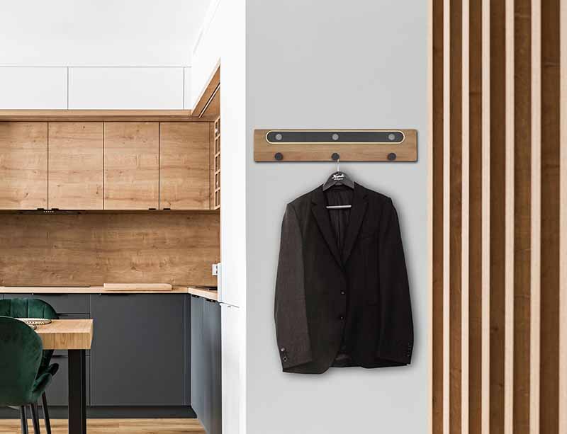 Applique murale rectangulaire noire portemanteau métal/bois Globo Chasey
