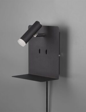 Pour gagner du temps le matin, utilisez l’applique murale Element que vous pouvez orienter à votre guise. L’avantage de ce modèle réside dans le support intégré à la structure en acier. Il vous permet de disposer quelques affaires et avec la lumière vous vous préparez dans les bonnes conditions. Ce modèle en noir correspond parfaitement aux salles de bains modernes.