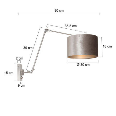 Cette lampe murale élégante combine une élégance intemporelle avec une fonction pratique. L’abat-jour en velours argenté offre une apparence luxueuse, tandis que le bras réglable vous donne la liberté de positionner la lumière exactement comme il faut. Idéale comme éclairage d’accent chaleureux ou comme lampe de lecture subtile à côté de votre fauteuil préféré.