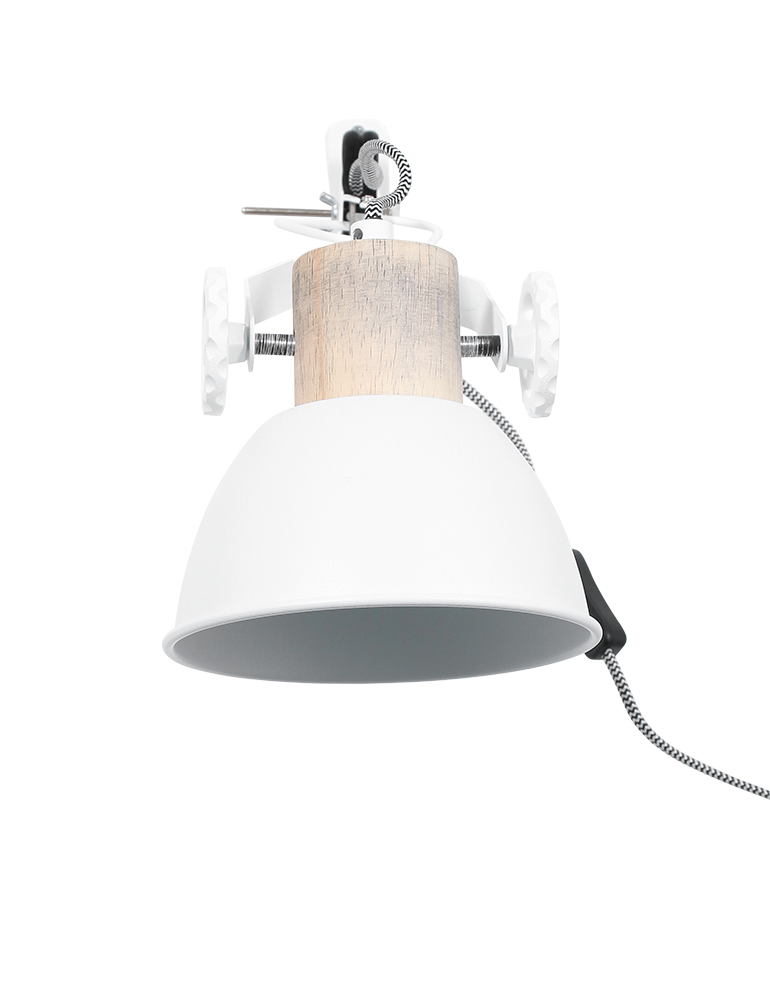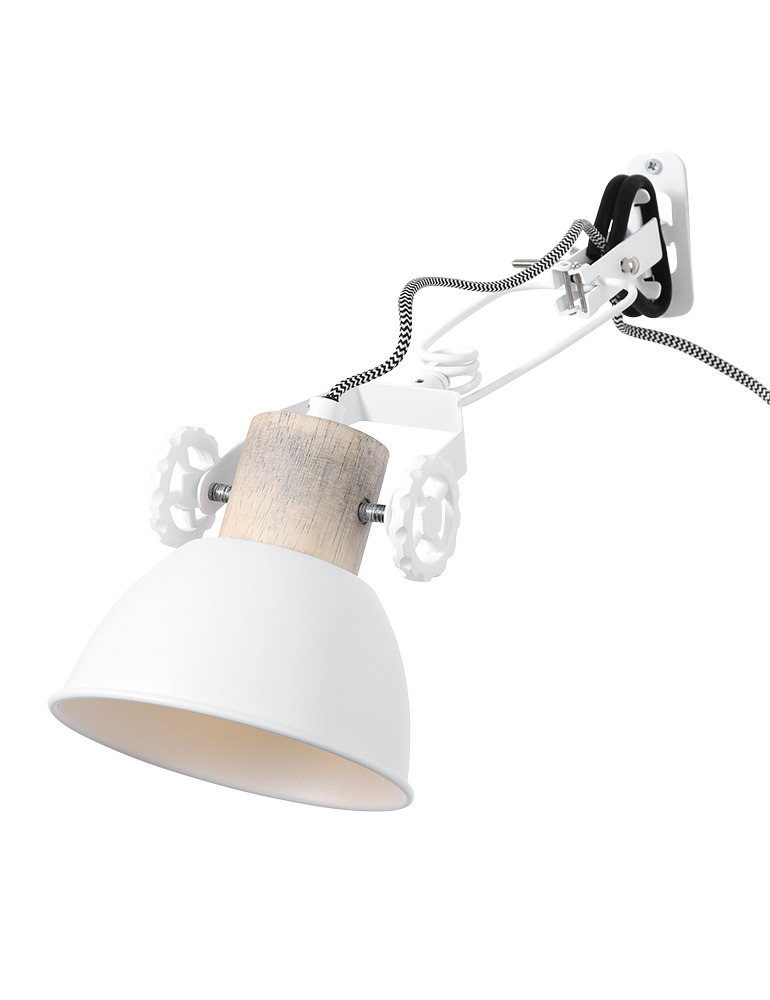 Cette applique blanche dévoile tout son atout pour décorer et éclairer votre intérieur. Elle dispose d’une pince d’accroche pour que vous puissiez la déplacer suivant vos besoins. Son design scandinave, révélé par son aspect bi-matière (bois et métal blanc) assure une ambiance chaleureuse dans n’importe quel endroit où elle s’installe. Cette collection Gearwood de Mexlite est parfaite pour votre chambre à coucher ou votre coin lecture.