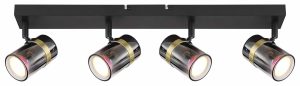 Barre de 4 spots noire pul accent doré Globo Trabby