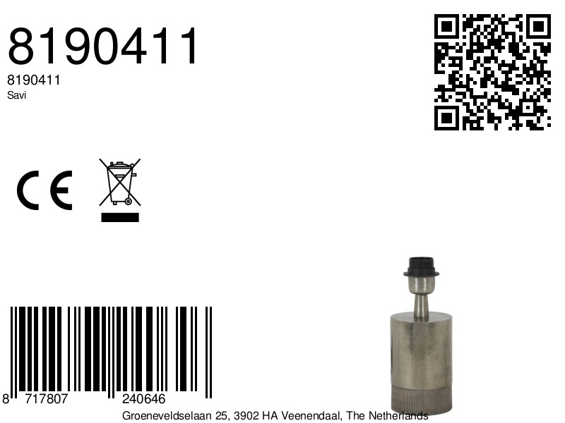 Base de lampe cylindrique moderne sombre Light & Living Savi