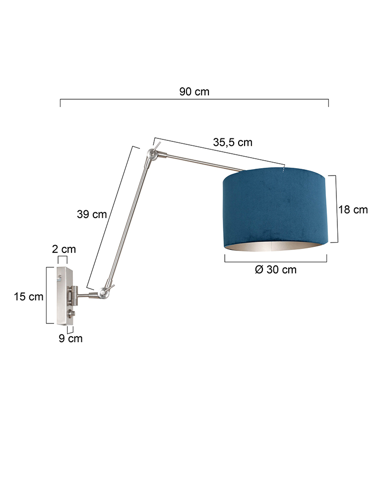 Cette applique est fournie avec un élégant abat-jour en velours bleu, qui confère une allure luxueuse et chaleureuse. Pour plus de commodité, le variateur est intégré dans la plaque murale et la lampe est livrée avec un cordon et une fiche. Une solution d’éclairage idéale pour la salle à manger ou le salon. Comprend une garantie fabricant de 2 ans.