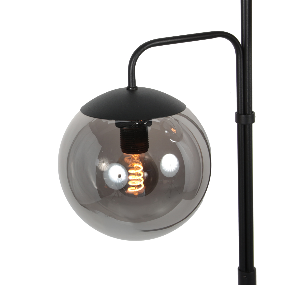 Lamp de floor Steinhauer Bollique avec trois boules en verre fumé noire