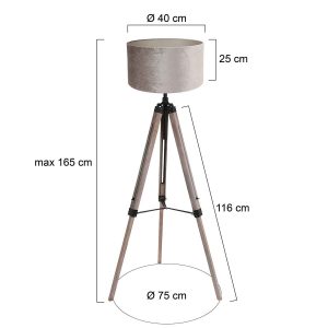 La lampe sur pied noire à trépied avec abat-jour en velours de Mexlite Triek apporte un charme rétro à votre intérieur. Idéale pour votre bureau (à domicile), salle à manger, chambre ou salon, cette lampe en tissu velours et en bois est équipée d’un culot E27. Avec une hauteur réglable de 125 à 170 cm et un diamètre de 75 cm, cette lampe offre un éclairage chaleureux et accueillant.