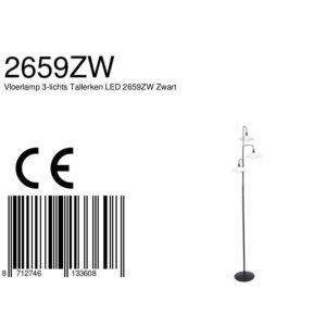 Lampadaire à trois spots en soucoupe Tallerken Steinhauer noir et blanc