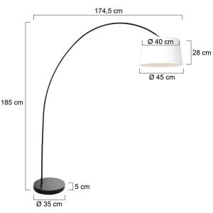 Lampadaire arc moderne et noir avec abat-jour blanc Mexlite Solva