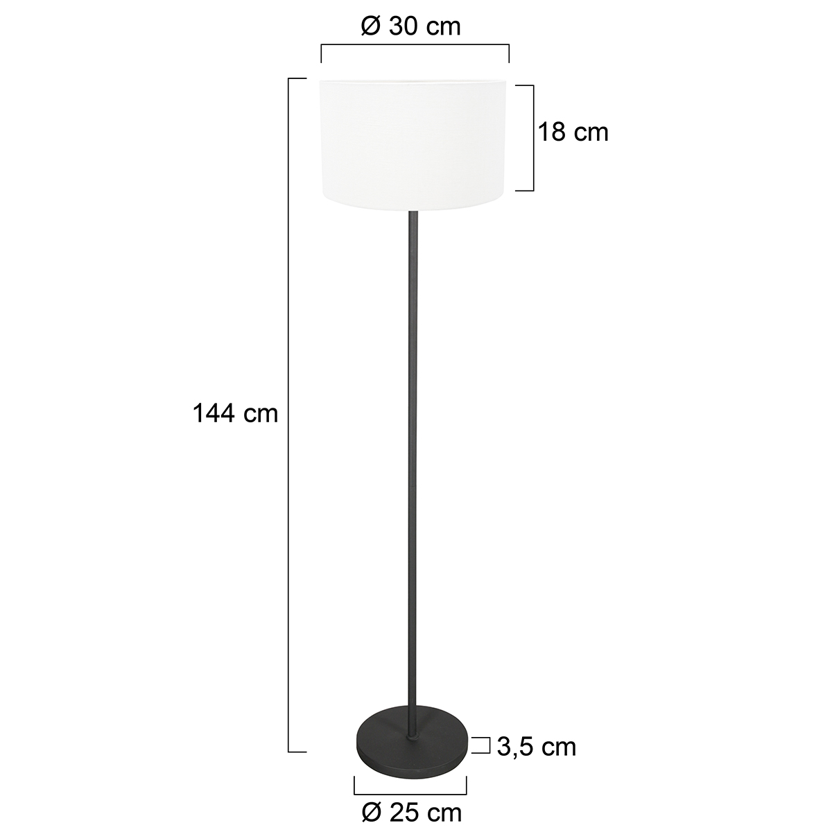 Cette lampe sur pied d’une hauteur de 144 cm combine un cadre noir mat épuré avec un abat-jour en lin blanc frais. L’abat-jour cylindrique d’un diamètre de 30 cm offre une lumière douce et claire qui apporte calme et équilibre à l’espace. Parfait pour ceux qui apprécient un look moderne et lumineux.